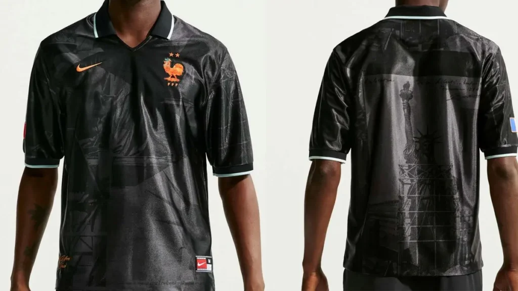 Ce motif n’est pas anodin : la Statue de Liberté est un cadeau de la France aux États-Unis, ce qui en fait un symbole particulièrement pertinent pour un tournoi organisé sur le sol américain. Nike crée ainsi une narration visuelle cohérente sur l’ensemble de la collection France 2026.